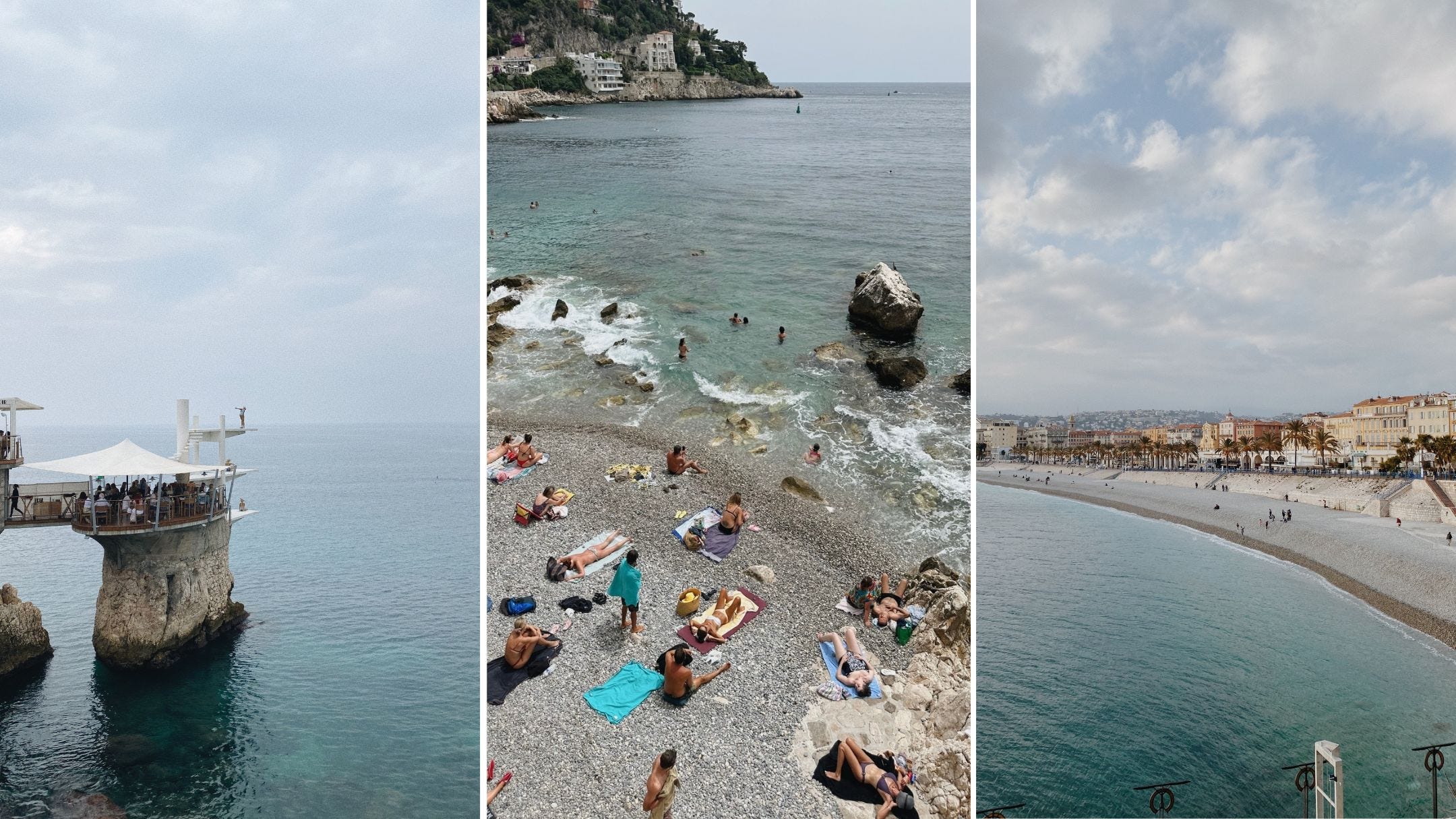 Coco beach-not stroller friendly, lots of stairs but some excellent views and rocks to jump off of. Also pass by le plongeoir for an iconic Nice photo.